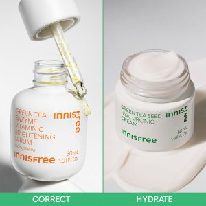 This site-exclusive duo includes a full-size Vitamin C Brightening Serum to help fade dark spots (including post-breakout marks). Lock in hydration and boost your skin’s barrier with the full-size Green Tea Hyaluronic Cream for a more nourished. radiant complexion.