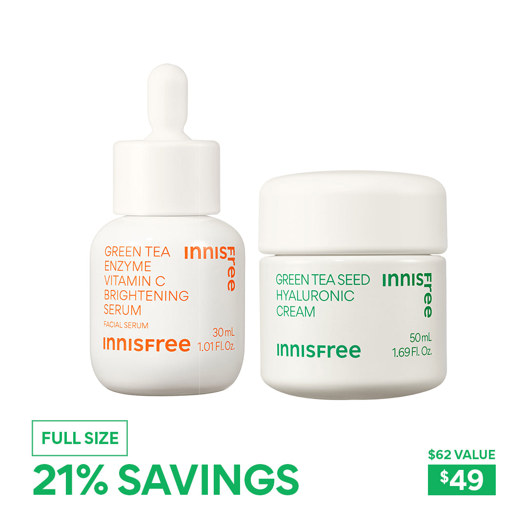 This site-exclusive duo includes a full-size Vitamin C Brightening Serum to help fade dark spots (including post-breakout marks). Lock in hydration and boost your skin’s barrier with the full-size Green Tea Hyaluronic Cream for a more nourished. radiant complexion.
